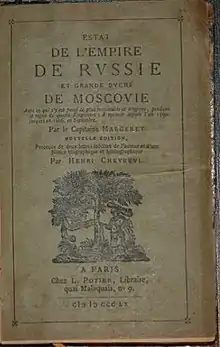 - Jacques Margeret. Estat de l'empire de Russie, et grande duche de Moscovie. — P., 1669.