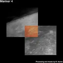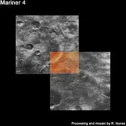 На снимках, полученных Маринером-4, усеянная кратерами поверхность Марса очень похожа на поверхность Луны. Но информация Маринера-6 и Маринера-7 показала, что такая поверхность не на всем Марсе, а только у более древних участков, сфотографированных Маринером-4. На снимках Маринера-4 замечено вуалирование, что привело к выводу о наличии на Марсе замутненной атмосферы до высот 150 км. Однако Маринер-6 и Маринер-7, на снимках которых вуалирования нет, опровергли замутненность атмосферы. По-видимому, оптика телекамеры Маринера-4 была загрязнена. [9]