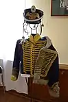 Общегусарская.Доломан,тулья,клапан - пальто,шинели - тёмно-синий, шлык,околыш,погоны,варварки,выпушка - жёлтый, металлический прибор - золотой.