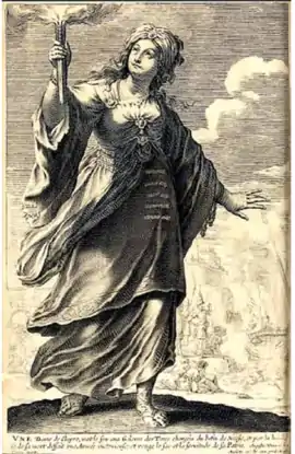 В опубликованной в 1625 году 47-й книге «Historia sui temporis» Жак Огюст де Ту описал неизвестную героиню, которая подожгла пороховой склад на борту корабля, увозившего добычу и христианских рабов в Константинополь. Героический поступок женщины изложен кратко, («… multa pretiosa veste, ac multis primae nobilitatis …»), историк называет героиню просто благородной матроной («nobili matrona»)[9]. В 1647 году иезуит Педро Ламойн написал сборник рассказов о героических женщинах, который был популярен и неоднократно переиздавался и переводился на другие языки. В сборнике фигурирует рассказ о безымянной пленнице, которую он называет пленница-победительница (The Victorious Captive, la Cautiva victoriosa)[10][11][12][13][14].