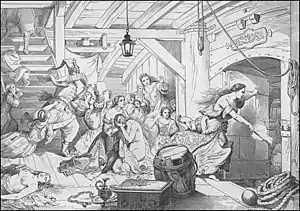 - Фра Калепио3 октября в то время как бочки с порохом занесли на борт большого галеона Мехмеда-паши, они взорвались и в мгновение ока уничтожили судно,<...> вызвав неописуемую панику во флоте. <...> Я слыхал, говорили, что знатная киприотка подожгла порох. Это правда, что галеон вёз большое количество очень красивых юношей и прекрасных женщин, в качестве приношения султану, Мехмеду-паше и сыну султана Мураду».