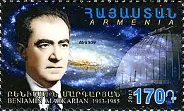 21 ноября 2013 года почта Армении выпустила почтовую марку номиналом 170 драмов и конверт первого дня, также посвящённые 100-летию со дня рождения учёного[4]. На почтовой миниатюре тиражом 30 000 экземпляров изображены портрет Маркаряна, купол Бюраканской обсерватории и галактика из каталога Маркаряна Mrk 509[5].