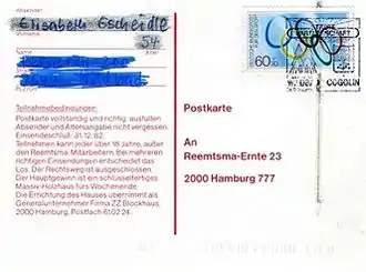Единственная сохранившаяся почтовая карточка с редкой маркой — открытка, выпущенная гамбургской табачной компанией «Реемтсма» (Reemtsma) для розыгрыша призов. Фрау Гшайдле направила её по адресу компании и выиграла по ней фотокамеру Polaroid стоимостью DM100. Однако, как замечает Der Spiegel, маловероятно, что она осталась при этом довольна[16].