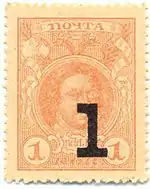 В 1917 году на лицевой стороне марок-денег Российской империи достоинством в 1 и 2 копейки была сделана надпечатка чёрной краской на лицевой стороне большой цифры номинала. Также были повторно выпущены марки-деньги достоинством в 1, 2 и 3 копейки, однако на оборотной стороне вместо герба была напечатана большая цифра номинала. Выпуски марок-денег Российской империи и Временного правительства были в обращении до 1919 года.