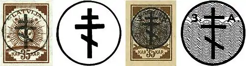Этот выпуск с очень большой долей вероятности никакого отношения к ЗДА не имеет, так как его производством занимался судья Кун, который в одной из своих статей заявил, что марки были выпущены «Комитетом латвийского самоуправления», о чём должны свидетельствовать буквы «L» и «P» («Latvijas Pārvalde»), расположенные на надпечатках по обе стороны креста (эмблема ЗДА):