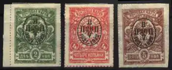 | 25 копеек — урна на фоне иркутской Князе-Владимирской церкви, 50 копеек — силуэт «Заамурца» — «Орлика», 1 рубль — силуэт чешского чешского легионера (Mi #1—3; Yt #1—3) |