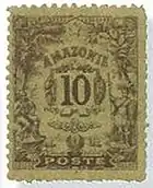 Амазония (фр. Amazonie). В 1901 году возникла серия с такой надписью, которая состояла из шести марок, была изготовлена неизвестными лицами и, вероятнее всего, представляла собой спекулятивно-фантастический выпуск. Некоторые исследователи полагают, что это были частные выпуски железнодорожной компании, которая осуществляла перевозку почты из внутренних районов междуречья Амазонки и Токантинс (Бразилия) к атлантическому побережью (город Белен), откуда корреспонденция далее переправлялась в город Кайенну (Французская Гвиана). По другой информации, Амазония — территория, располагавшаяся в бассейне реки Рио-Карсевене (порт. Rio Carsevene), притоке Амазонки, а марки с этим названием вышли в свет в 1894 году. Не исключено, что это были две разные эмиссии[10].