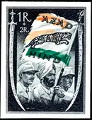 Азад Хинд (Azad Hind), или с хинди — «Свободная Индия». В 1942—1945 годах входившие в состав Британской Индии Андаманские и Никобарские острова были оккупированы Японией. Для созданного на них Временного правительства Свободной Индии, возглавлявшегося Субхасом Чандра Босом, в нацистской Германии, в имперской типографии в Берлине были отпечатаны пропагандисткие марки с надписью Àzàd Hind. Вся серия с разновидностями включала 21 марку. Для островов изготовили три марки номиналами в ½, 1 и 1½ анна, с зубцами и без зубцов, но в почтовое обращение они не поступали. В то же время для континентальной части Индии эмитировали 16 марок, описание которых включено в каталог «Михель», поскольку они были в употреблении для почты в районе города Импхал (территория Манипур), где было расположение подразделений Индийской национальной армии[3][9].