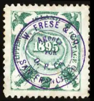 Клиппертон (Clipperton) — небольшой островок, расположенный в Тихом океане, находится в составе Французской Полинезии. Остров необитаем и до 1931 года был спорной территорией. В 1895 году на филателистическом рынке возникла 10-марочная серия с названием острова, преследовавшая спекулятивные цели[39][41]. По информации И. Шевченко[39], автор выпуска неизвестен. Однако, по другим сведениям[42], марки были подготовлены американской Океанической фосфатной компанией (Oceanic Phosphate Company) из Сан-Франциско, занимавшейся на острове разработкой фосфатов из птичьего помёта гуано. Соответственно, выпущенные марки были проштемпелёваны двойными круглым штампом с текстом: «W. Frese & Co. San Francisco» («У. Фрезе и К°. Сан-Франциско») и «Agents for O. P. Co.» («Агенты для Океанической фосфатной компании»). Предполагалось использовать эти марки для оплаты почтовой корреспонденции наёмных рабочих компании, но планам этим не суждено было сбыться. Тем не менее существуют семь конвертов, прошедших официальную почту и франкированных этими марками, а также шесть экземпляров марок, погашенных действительными почтовыми штемпелями.