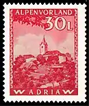 Альпенфорланд—Адрия (нем. Alpenvorland / Adria). Фантастические марки с такой надписью появились во второй половине 1940-х годов и повторяли рисунки оккупационных марок Провинции Лайбах (Любляны).