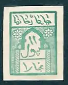 Бохара (Bokhara)[28]. Бухарский эмират находился в вассальной зависимости от Российской империи, и в 1886 году от его имени были выпущены спекулятивно-фантастические марки, изображающие стилизованную мечеть с надписями якобы на местном языке[4][29].