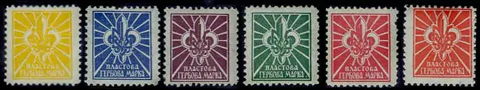 11 февраля 1948 года в Ганновере (Британская зона Германии) Краевая Пластовая Старшина по случаю 40-летия мирового скаутинга и в честь 91-й годовщины со дня рождения основоположника скаутинга лорда Баден-Пауэлла выпустила памятную серию из пяти марок с одинаковым рисунком. Серия была приурочена к международной встрече, которая состоялась 22 февраля 1948 года в украинском лагере беженцев в Ганновере. Рисунок изображает руку скаута в скаутском приветствии, окружённую лилиями скаутских подразделений разных народов, принимавших участие во встрече: англичан, латышей, белорусов, украинцев, поляков, эстонцев и литовцев. Автором рисунка был Анатолий Яблонский. Марки печатались в типографии Клеменса Штитца в Ганновере.
