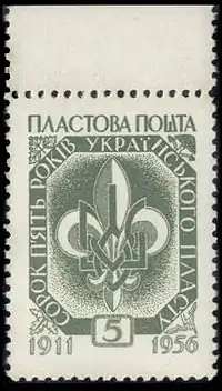 После Второй мировой войны марки пластовой почты выпускались в лагерях украинских беженцев в Германии.