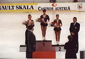 ![]() 1993. Слева направо: Ольга Маркова, Кристина Цако, Таня Шевченко | |