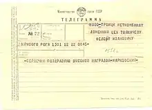 - Орден Трудового Красного Знамени;