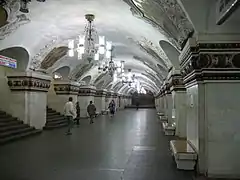 - Станция Московского метрополитена Арбатско-Покровской линии «Киевская», 1953 г., арх. Л.В. Лилье, В.А. Литвинов, М.Ф. Марковский, В.М. Доброковский, арх. вестибюля: И.Г. Таранов, Г.С. Тосунов, инж.-констр.: А.Н. Пирожкова |. www.mosculture.ru. Дата обращения: 17 февраля 2018.