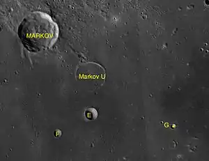 Кратер Марков (лат. Markov) — крупный ударный кратер в области северного побережья Океана Бурь на видимой стороне Луны. Название присвоено в честь советского астронома Александра Владимировича Маркова (1897—1968) и русского математика Андрея Андреевича Маркова (1856—1922); утверждено Международным астрономическим союзом в 1964 г. Образование кратера относится к позднеимбрийскому периоду[1].