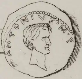 Портрет Марка Антония Антилла сохранился на двух монетах, 39 и 35 годов до н. э., где он изображён вместе с отцом[4].