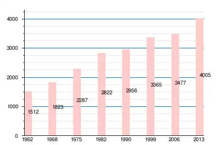 Население коммуны в 2011 году составляло 3806 человек[6], в 2012 году — 3906 человек[7], а в 2013-м — 4005 человек[5].