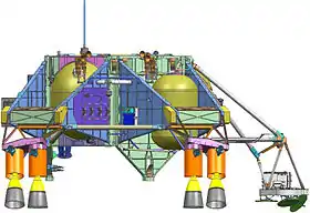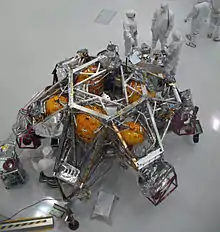 | Спускаемый аппарат | ![]() | Масса спускаемого аппарата (изображён в сборе с перелётным модулем) составляет 3,3 тонны. Спускаемый аппарат служит для контролируемого безопасного снижения марсохода при торможении в марсианской атмосфере и мягкой посадки марсохода на поверхность. |