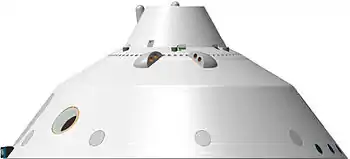 В тыльной части капсулы размещён контейнер для парашюта, замедлившего спуск в атмосфере. Диаметр парашюта — примерно 16 м, он закреплён на 80 стропах и имеет длину свыше 50 метров. Создаваемое тормозное усилие — 289 кН.