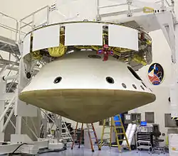| Перелётный модуль | ![]() | Модуль управляет траекторией Mars Science Laboratory во время полёта с Земли на Марс. Также включает в себя компоненты для поддержки связи во время полёта и обеспечения теплового режима. Перед входом в атмосферу Марса происходит разделение перелётного модуля и спускаемого аппарата. |