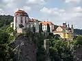 Вид на замок в Постолопрти, на заднем фоне различима капелла