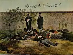 Однако после принятия ультиматума, вооруженные формирования дашнаков устроили грабежи, поджоги и убийства в мусульманских кварталах города[6][15] Согласно британскому исследователю Питеру Хопкирку: