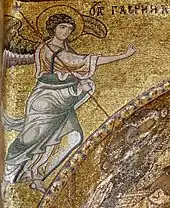 Тема поклонения ангелов продолжается на сводах восточного рукава, где в роскошных одеяниях византийских сановников и с жезлами в руках представлены архангелы Михаил и Гавриил (их изображения размещены симметрично относительно оси «восток-запад»). Лики архангелов обращены к востоку, что позволяет предположить, что в самой апсиде, уничтоженной в 1683—1686 годах также были мозаичные изображения. Поскольку церковь была посвящена Богородице, принято считать, что в главной апсиде была изображена именно Она (с Младенцем в руках или в позе «оранта»). Расположение изображения Богородицы в центре главной апсиды, предполагаемое в Марторане, косвенно подтверждается аналогичными композициями в соборах Чефалу и Монреале[26].