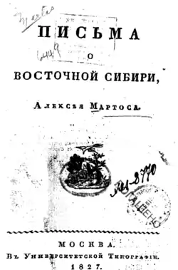 - «Письма о Восточной Сибири». // Москва. Университетская типография. 1827