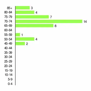 | Жителей | 775 | 851 | 772 | 426 | 119 | 88 | 73 | 74 | 43 |