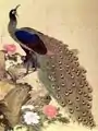 Павлин и пионы