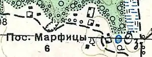 Согласно топографической карте 1930 года деревня Марфицы насчитывала 26 крестьянских дворов, посёлок Марфицы — 5[4].