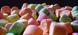 Маршмэллоу (от англ. Marshmallow мальва болотная) — кондитерское изделие, напоминающее пастилу или суфле. Маршмэллоу состоит из сахара или кукурузного сиропа, желатина, размягченного в горячей воде, глюкозы, взбитых до состояния губки[1][2], к которым может добавляться незначительное количество красителей и ароматизаторов[3]. В отличие от зефира, в состав маршмэллоу не входит плодовое или ягодное пюре.