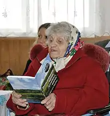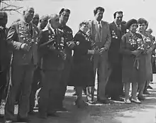 ![]() Митинг на казачьем поле возле памятного знака (ноябрь 1984) | ![]() Встреча с учениками Марьевской восьмилетней школы. Харченко Мария Тихоновна и Забазнова Анна Афанасьевна (1984 р.) |