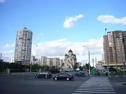 Дом № 1 — храм иконы Божией Матери «Утоли моя печали». Храм пятикупольный в стиле русского классицизма XIX века, построен в 1999—2001 годах по проекту архитектора А. Н. Оболенского. Главный купол — в центре, четыре расположены симметрично относительно него, образуя квадрат. Храм имеет две колокольни. Главный престол — иконы Божией Матери «Утоли моя печали»[3].