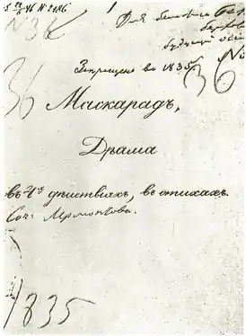 «Маскара́д» — драма Лермонтова в четырёх действиях, в стихах. Главным героем её является наделённый мятежным духом и умом дворянин Евгений Арбенин.