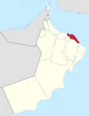 На западе граничит с регионом Эль-Батина, на юго-западе с регионом Эд-Дахилия, на юге с регионом Эш-Шаркия. На севере побережье Оманского залива.