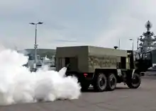| Маскировка путём снижения цветового контраста. Итальянская самоходка времён Второй мировой войны. В окраске, предназначенной для ведения боевых действий в песках Африки | Маскировка путём совместного использования снижения контраста и искажения вида солдата | Маскировка путём искажения вида скрываемого объекта. Океанский лайнер в окраске времён Первой мировой войны | Дымовая завеса в исполнении американских военных |