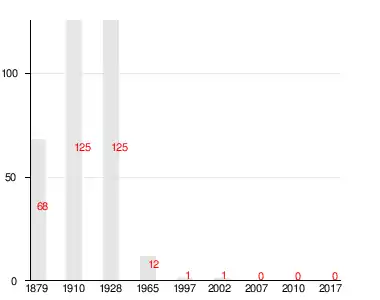 Число жителей по семейным спискам 1879 г.: 37 м. п., 31 ж. п.; по приходским сведениям 1879 г.: 34 м. п., 28 ж. п.[2]