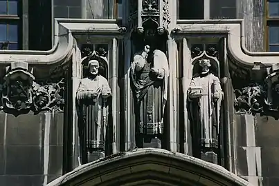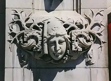 Большая часть работ из камня, гипса и металла, в интерьере здания, была разработана и выполнена скульптором-архитектором Коррадо Пардуччи. Три фигуры над главным входом были выполнены Лео Фридлендером, в то время как остальная часть скульптур, на внешней стороне здания, была выполнена Биллом Герке.