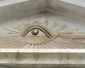 Барельеф Всевидящего ока Великого Архитектора Вселенной в карнизе здания