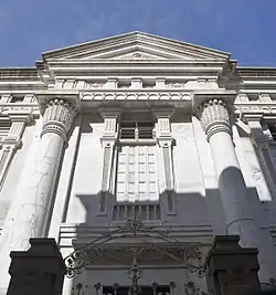 За входной дверью расположен вестибюль, в дальнем конце которого находится еще одна дверь, выполненная в похожем стиле, которая ведет в зал заседаний. Здесь сохранились мозаичные полы, рельефные колонны и возвышение в центре зала. Тем не менее, потолочные фрески были перекрашены в белый цвет, а деревянная конструкция потолка закрыта подвесными алюминиевыми панелями.