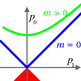 где m — инвариантная масса, а uμ — 4-скорость (производная от 4-координаты по собственному времени частицы ; единичный вектор, направленный вдоль мировой линии частицы).