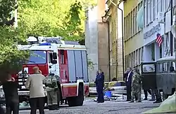 По воспоминаниям некоторых очевидцев, всего взрывов было несколько, а также были слышны выстрелы из автоматического оружия, что вызвало предположения о том, что нападавших могло быть несколько[9][10]. Издание «Новая газета» приводило слова студента колледжа Виктора, который отмечал, что слышал не менее 10 выстрелов, причём, по его словам, это была именно одиночная стрельба, а не автоматная очередь[1].