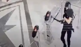 Примерно в 12:15 нападавший, перешедший к тому времени по переходу из корпуса № 8 в корпус № 6 и спускавшийся со второго этажа в холл корпуса[3], был ранен и обезврежен, после чего в тяжёлом состоянии доставлен в больницу, где ему была оказана экстренная медицинская помощь и проведена операция по ампутации ноги из-за образовавшихся тромбов[9]. Охрана больницы была усилена полицией[10].