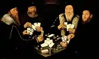 Четыре господина высокого ранга играют в карточную игру Primero.