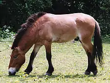 - Саврасая — предок современной гнедой. Масть лошади Пржевальского. Окраска туловища блекло-рыжеватая, неравномерная, с посветлением на животе. Грива, хвост и нижние части ног чёрные, но часто не целиком, и окраска их часто нечистая.