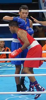 ![]() Масук (в синем) на Олимпиаде в Рио-де-Жанейро | |