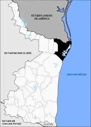 Он граничит с другими муниципалитетами штата Тамаулипас: на юге с Сан-Фернандо, на западе с Рио-Браво и Валье-Эрмосо, на севере проходит государственная граница с Соединёнными Штатами Америки, а на востоке омывается водами Мексиканского залива[4].